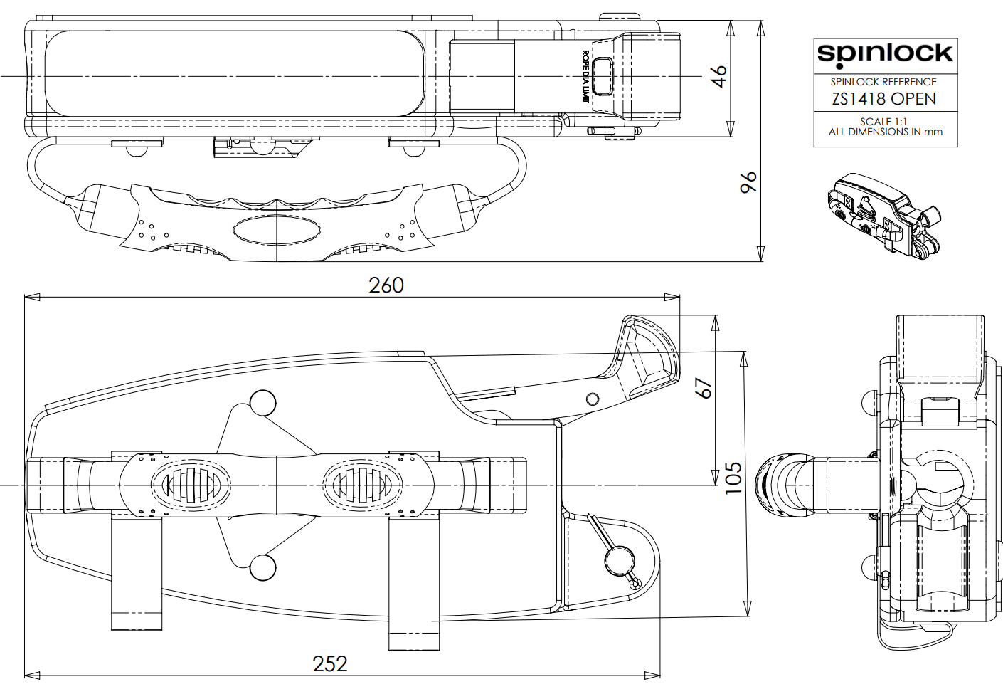 Coinceur ouvrant ZS/OPEN Ø14-18mm 3200kg noir