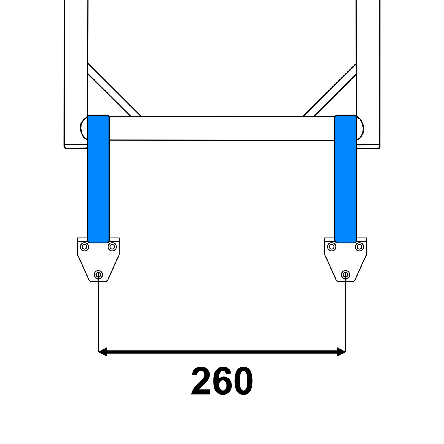 Fixation intérieure avec sangle sur les plaques de montage fixées au sol.