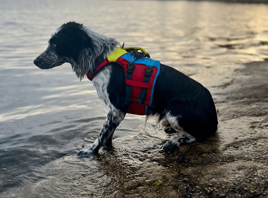 • Poignée pratique à l'arrière du gilet de sauvetage permettant de soulever et de récupérer facilement votre chien de l'eau