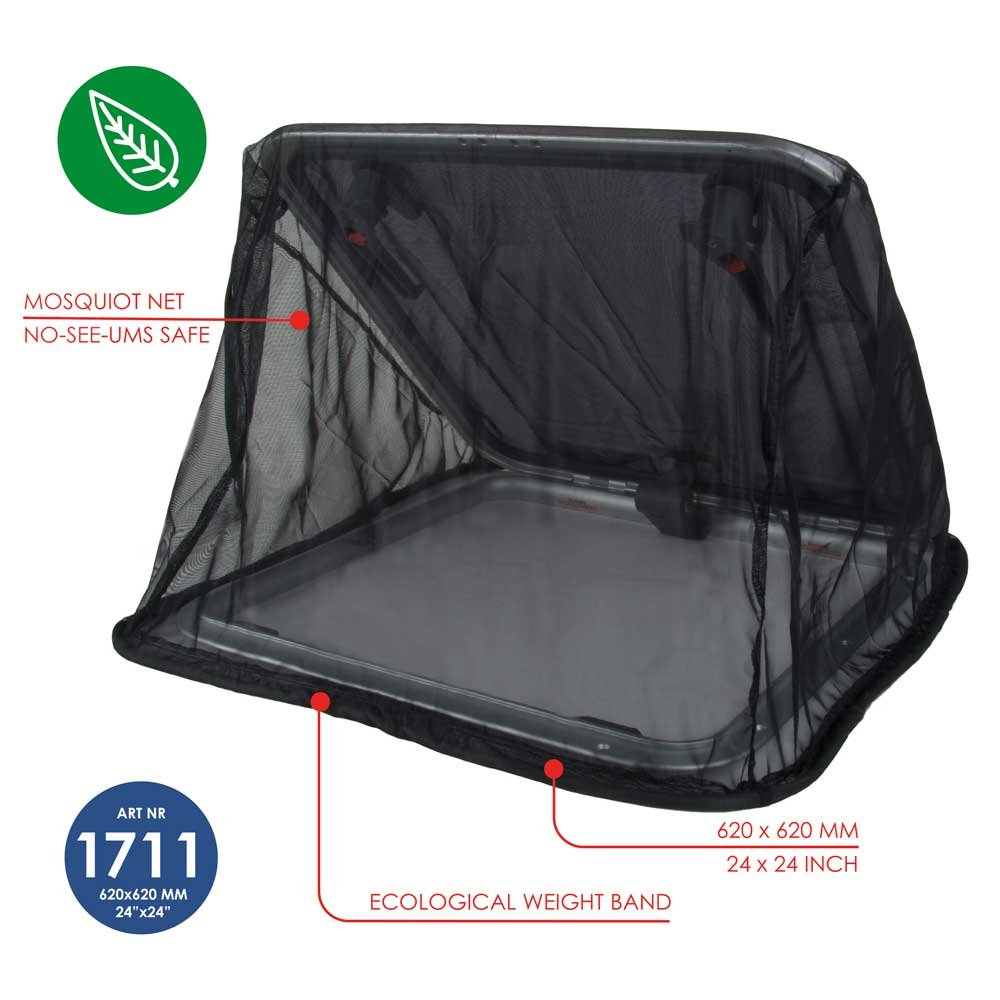 Moustiquaire à poser sur les écoutilles ouvertes et dotée d'une bande de lestage sans plomb pour fixer la moustiquaire en cas de vent fort.