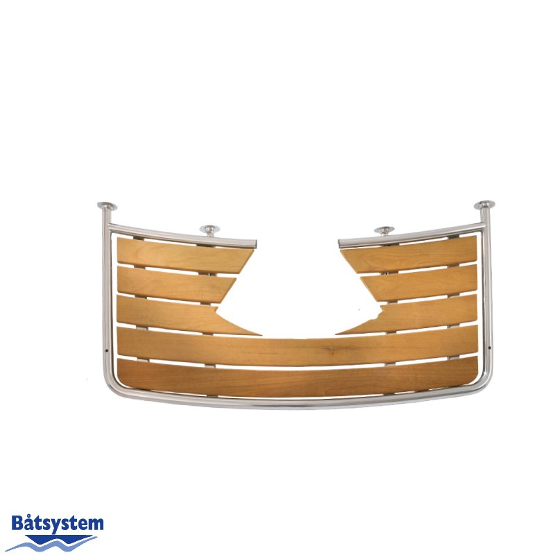 Plate-forme avec marchepied composé de 5 profilés parallèles en teck + découpe gouvernail.