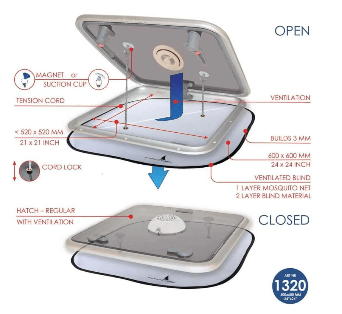 Rideau occultant + moustiquaire pour panneau de pont avec aérateur
