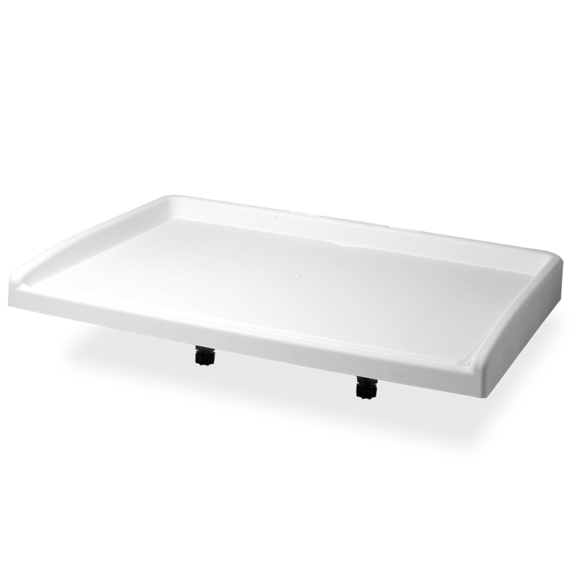 La conception de la table (525 x 350 mm) permet d’envisager le stockage d’un couteau. Elle possède un rebord tout autour qui évite un déversement vers l’avant, et une ouverture frontale qui permet un bon mouvement du couteau lors de la découpe (grâce aux 2 jonctions fournies).